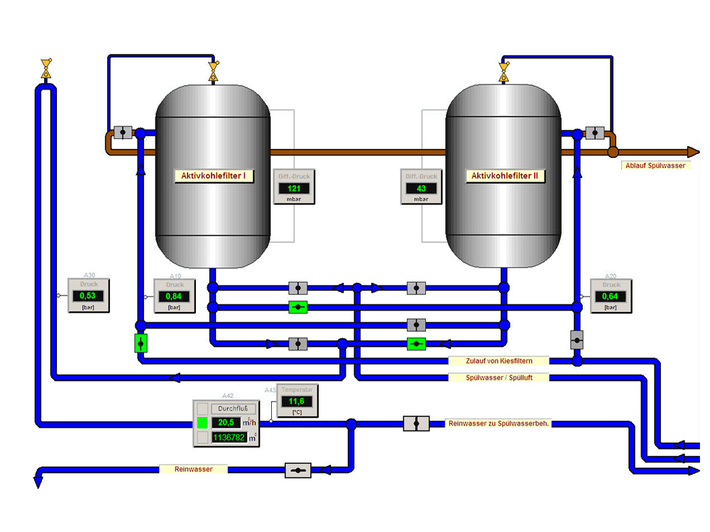 Fliesschema Aktivkohleanlage umschaltbar